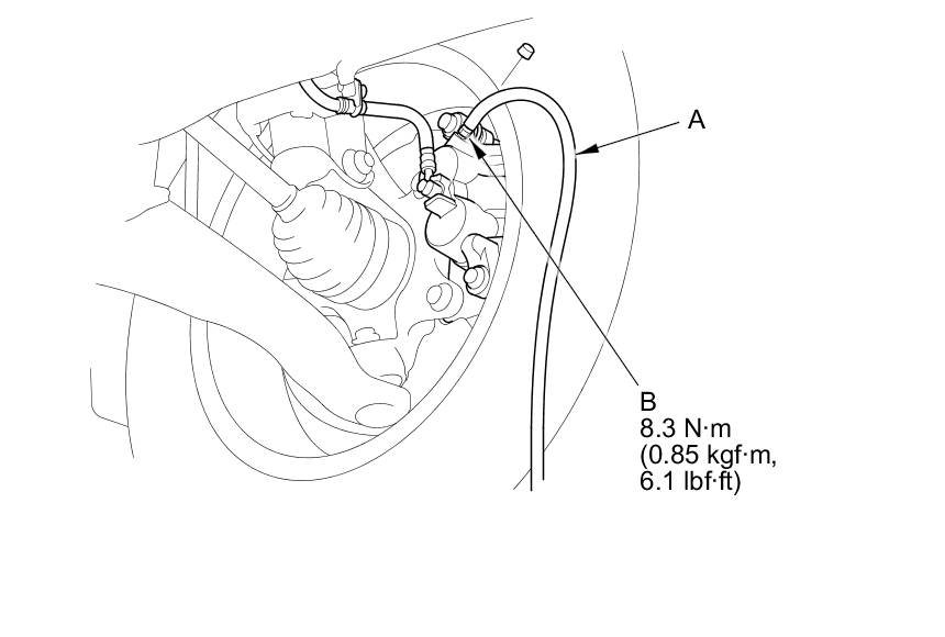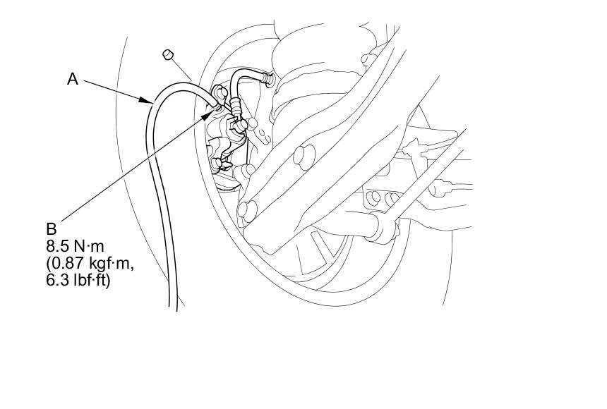 4. Attach a length of clear drain tube (A) to the bleed screw (B), then loosen the bleed screw to allow air to escape from the system. Then tighten the bleed screw securely.