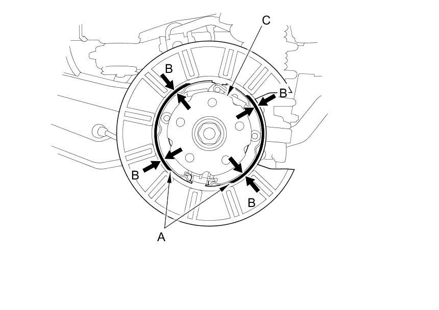 7. Check the hub (C) for smooth operation. If it requires servicing, replace the hub bearing unit Service and Repair.