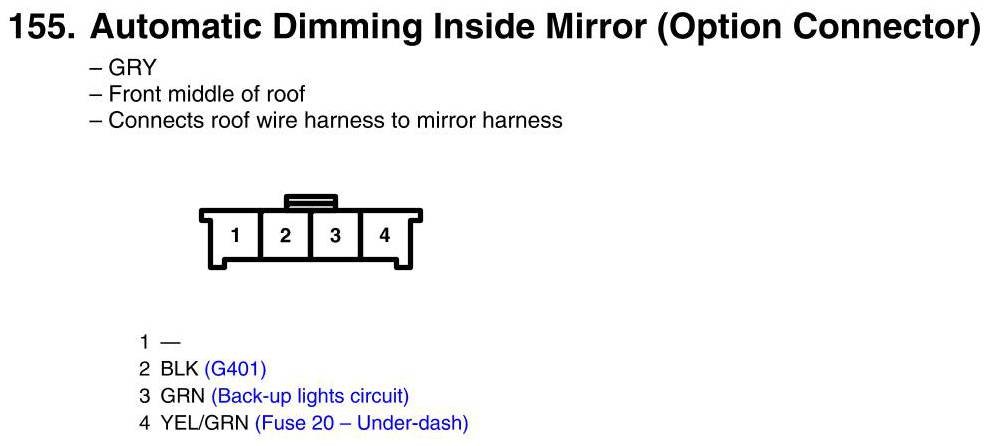 View 155 - Automatic Dimming Inside Mirror Connector View (Option Connector)
