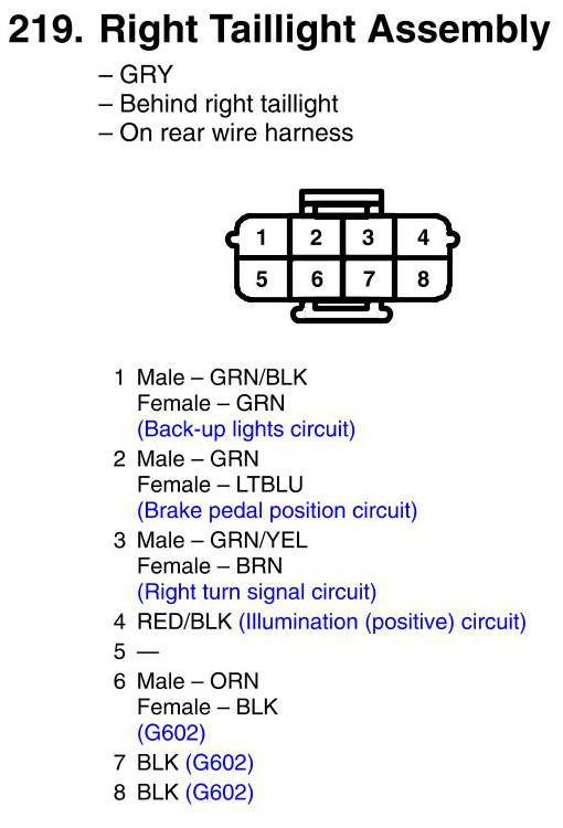 View 219 - Right Taillight Assembly Connector View