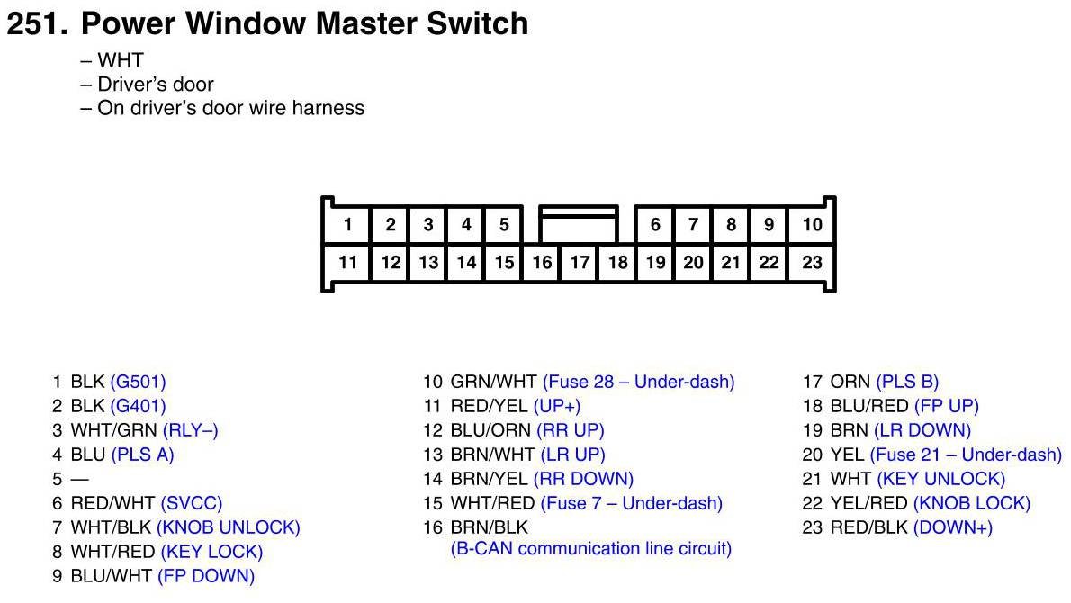 View 251 - Power Window Master Switch Connector View