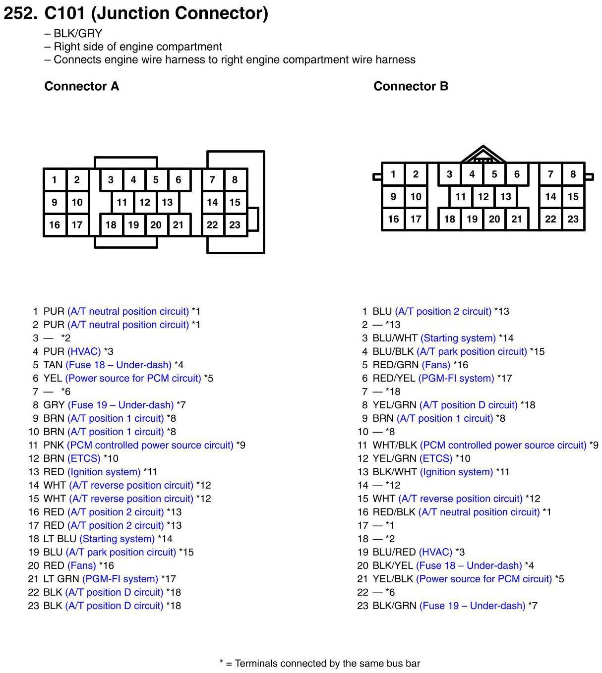 View 252 - C101 (Junction Connector) Connector View