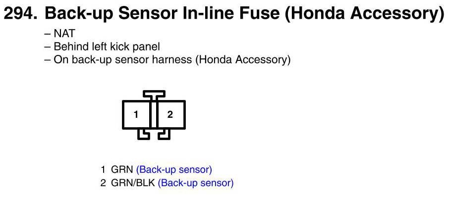 View 294 - Back-Up Sensor In-Line Fuse Connector View (Honda Accessory)
