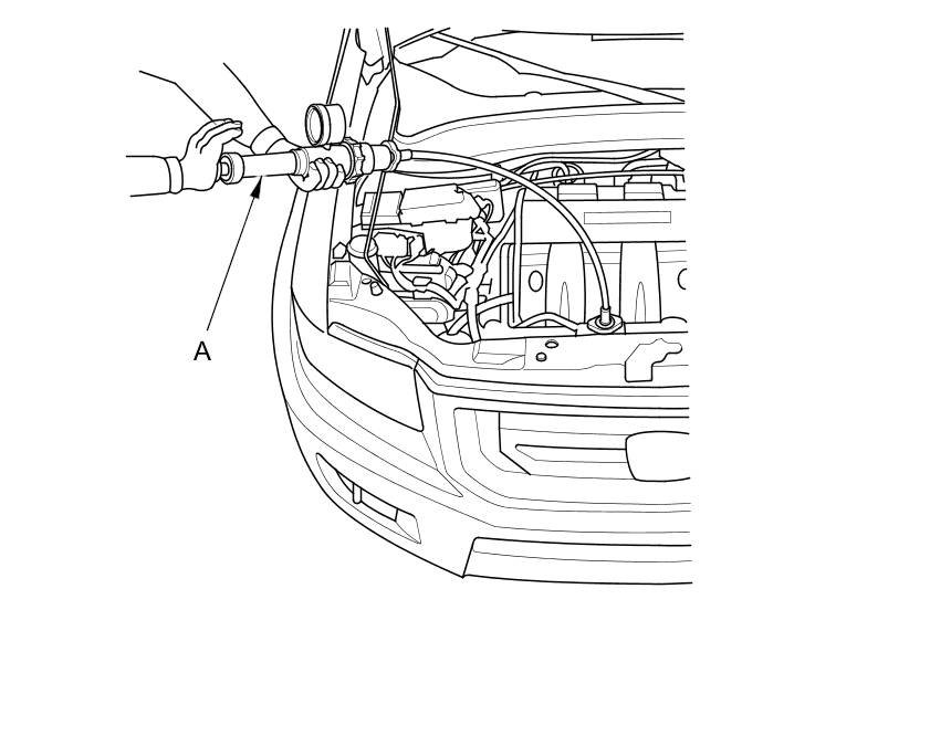 2. Attach a commercially available pressure tester (A) to the radiator, and apply a pressure of 93-123 kPa (0.95-1.25 kgf/cm2, 13.5-17.8 psi).