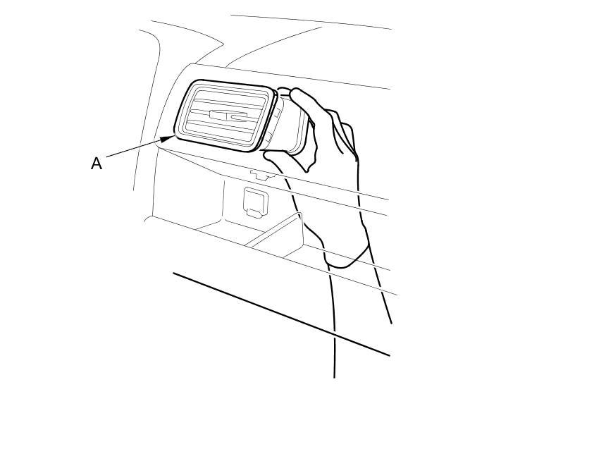 3. To loosen, push on the dashboard vent (A) by reaching through the glove box opening.