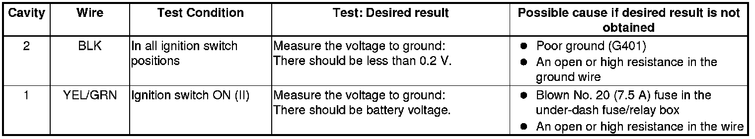 2. Inspect the connector and socket terminals to be sure they are all making good contact.