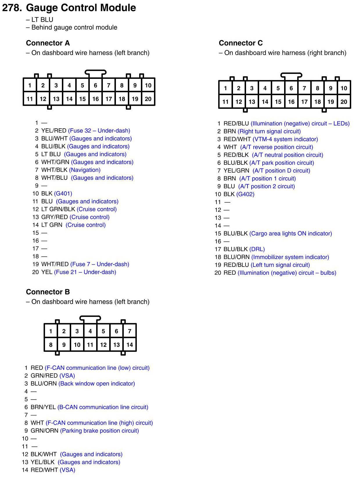 Instrument Panel Control Module: Diagrams