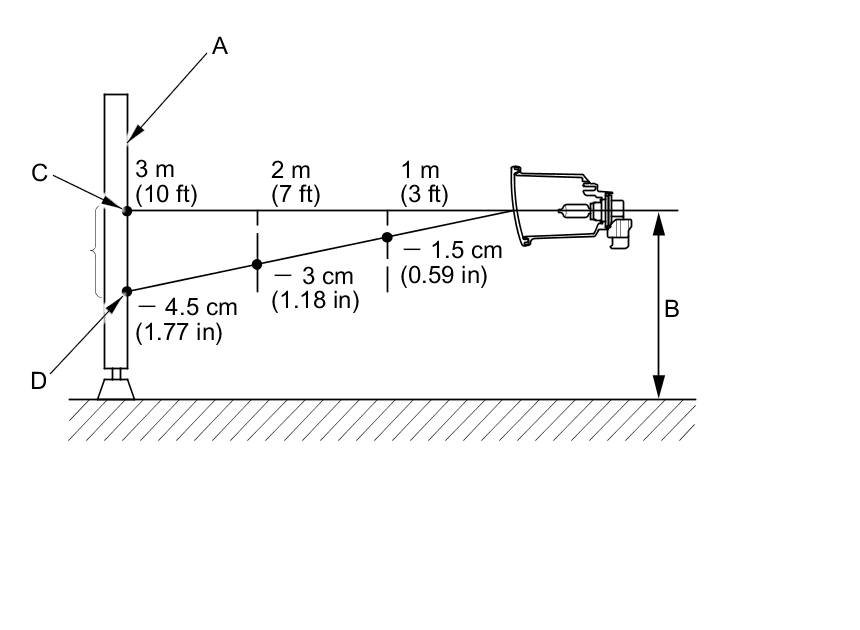 - Check each fog light beam's height with the vehicle parked 3 m (9.6 ft) from the screen, the top of the fog light beam should be 4.5 cm (1.77 in) below the tape mark.