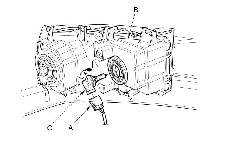 3. Turn the fog bulb socket (C) 45 ° counterclockwise to remove it from the housing.