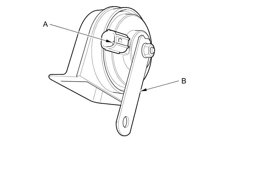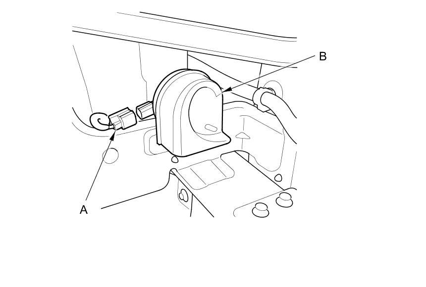 3. Test the horn by connecting battery power to the terminal (A) and grounding the bracket (B). The horn should sound.