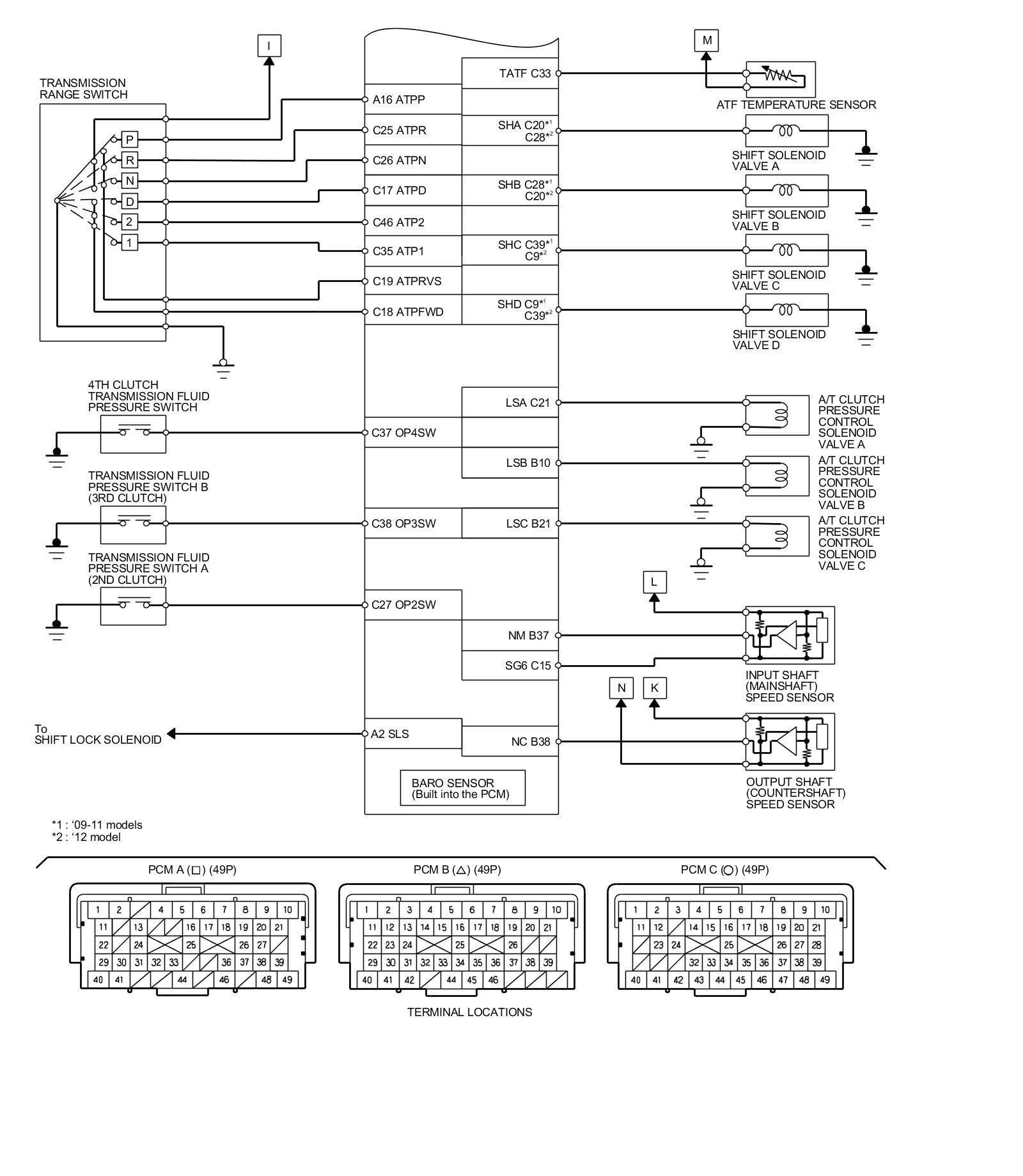 PCM Inputs and Outputs at PCM Connector C (circle) (49P)