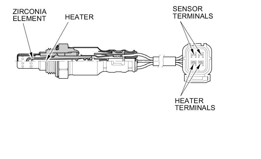 The secondary HO2S detects the oxygen content in the exhaust gas downstream of the warm up three way catalytic converter (WU-TWC), and sends signals to the PCM. To stabilize its output, the sensor has an internal heater. The PCM compares the HO2S output with the A/F sensor output to determine catalyst efficiency. A secondary HO2S is installed in each bank, downstream of the WU-TWC.