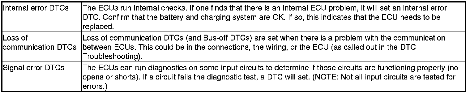 There are three types of DTCs used by the CAN networks.