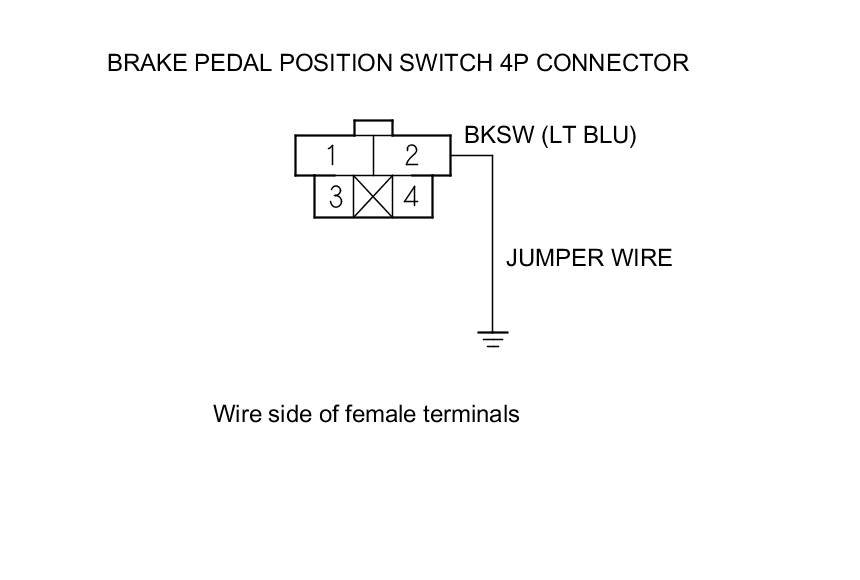 9. Connect brake pedal position switch 4P connector terminal No. 2 to body ground with a jumper wire.