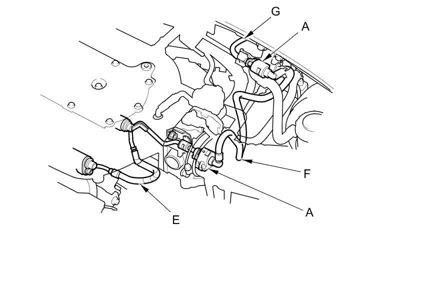 The fuel line/quick-connect fittings (A, B, C, and D) connect the fuel joint hose (E) to the fuel feed hose (F), the fuel feed hose to the fuel line (G), the fuel line (H) to the fuel tank unit (I) and the fuel vapor line (J) to the EVAP canister (K). When removing or installing the fuel feed hose, the fuel tank unit, or the fuel tank, or when disconnecting/connecting the quick-connect fittings, pay attention to the following: