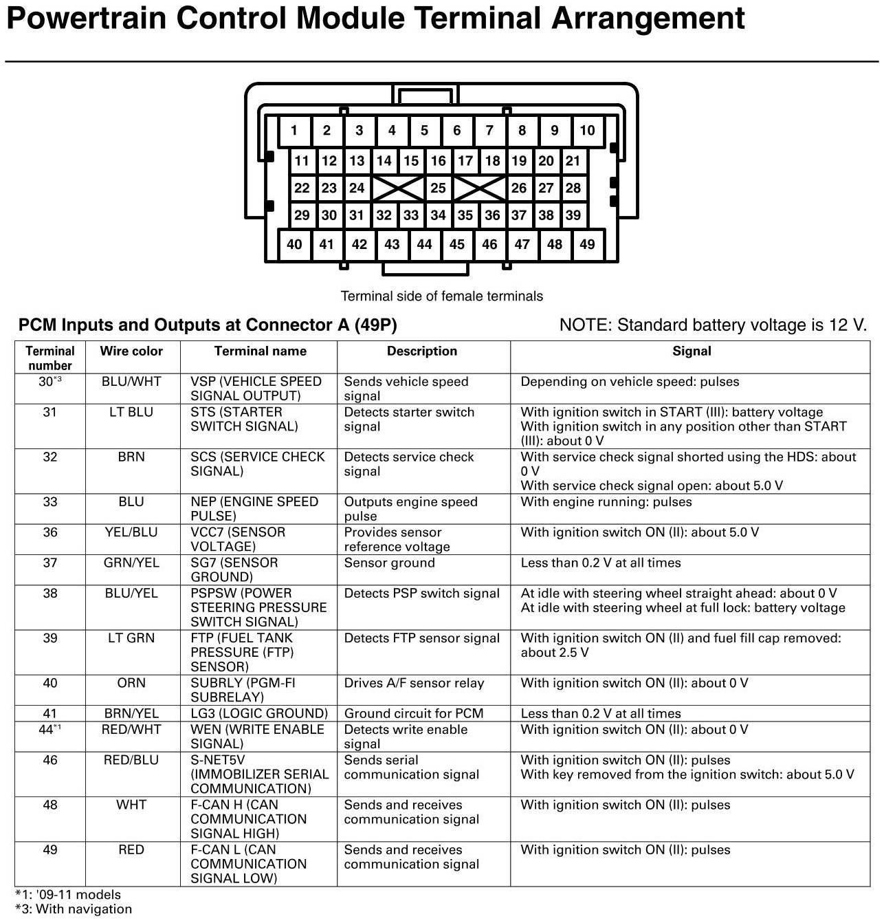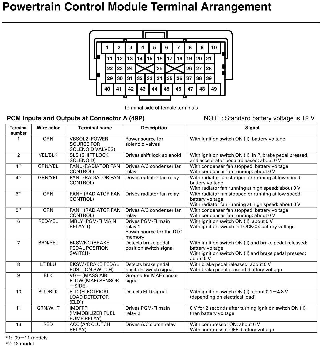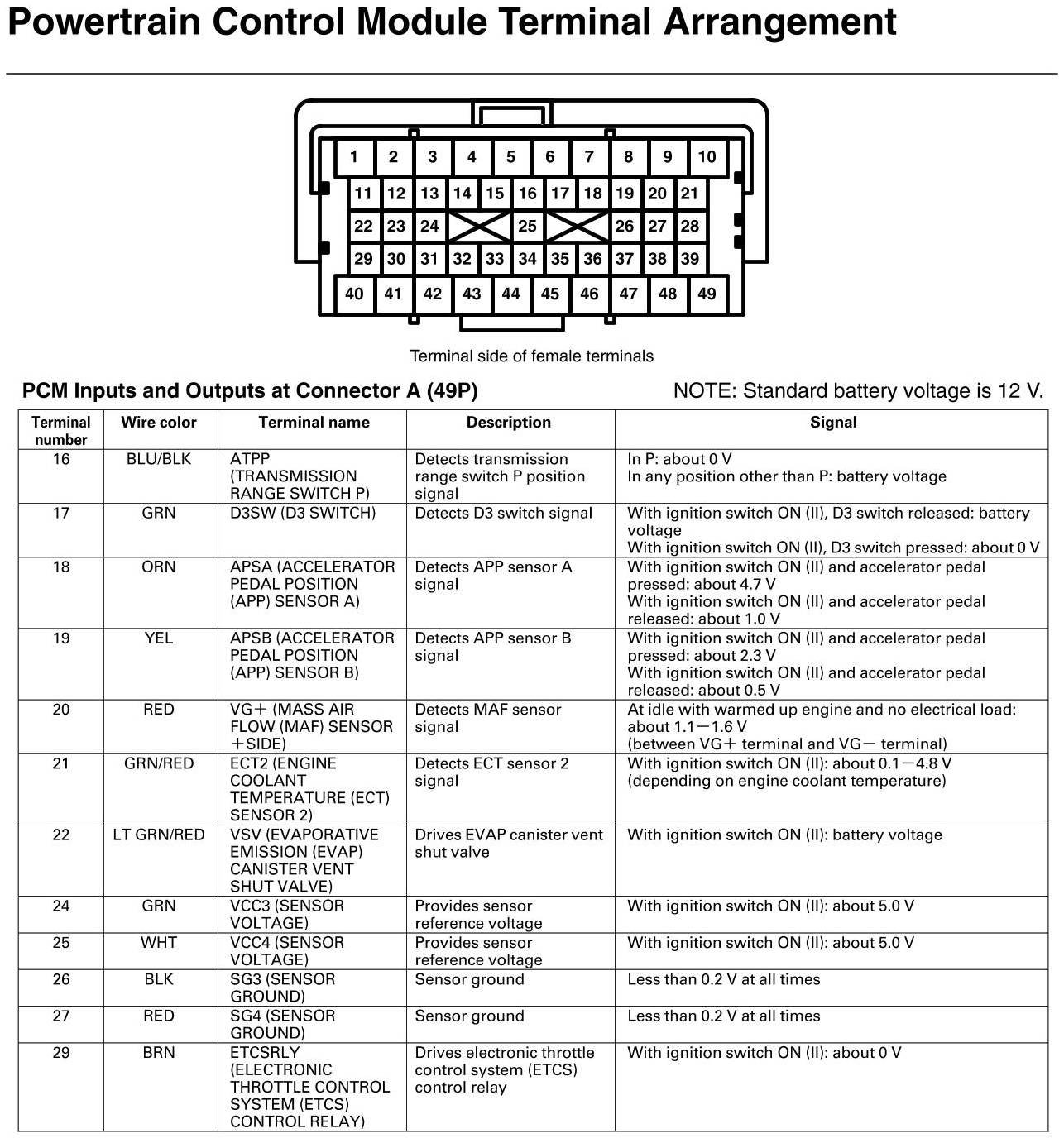 PCM Inputs And Outputs At Connector A