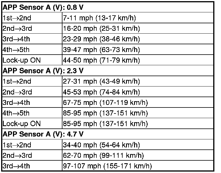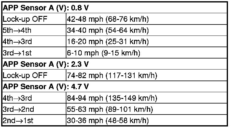 9. Monitor the HDS, and accelerate quickly until the APP Sensor A reads 0.8 V. Maintain a steady throttle until the transmission shifts to 5th gear, then slow the vehicle and come to a stop.