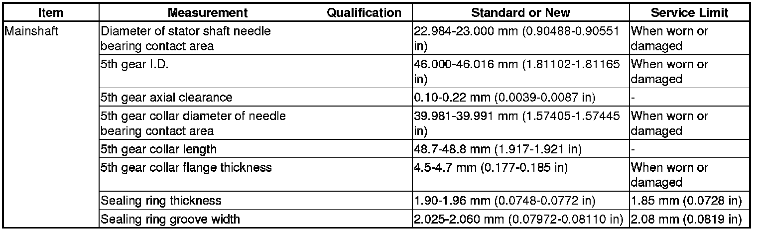 Mainshaft Specification(s)