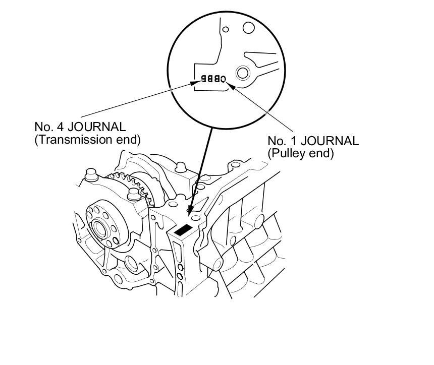 Letters or bars have been stamped on the end of the engine block as a code for the size of each of the four main journal bores.