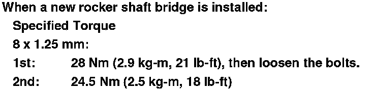 Tighten each bolt two turns at a time in the sequence shown to ensure that the rockers do not bind on the valves.