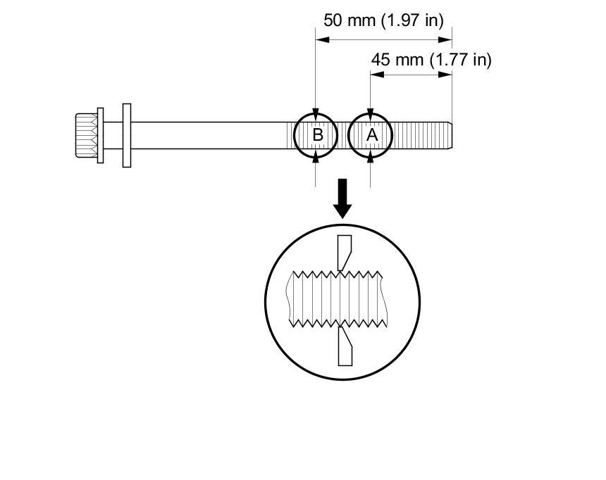 If either diameter is less than 10.6 mm (0.417 in), replace the cylinder head bolt.