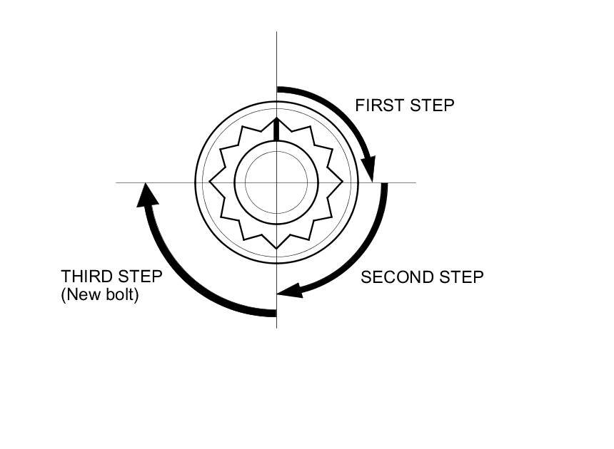 After torquing, tighten all cylinder head bolts in two steps (90 ° per step) using the sequence shown in step 11. If you are using a new cylinder head bolt, tighten the bolt an extra 90 °.