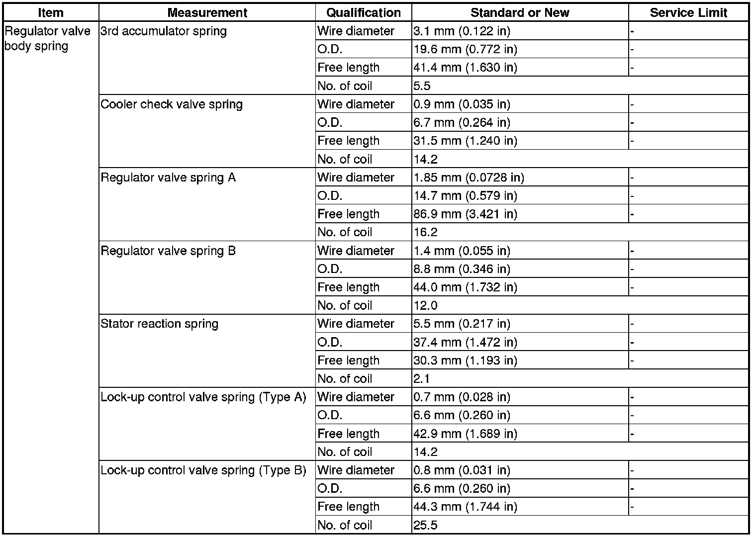Regulator Valve Body Spring Specification(s)