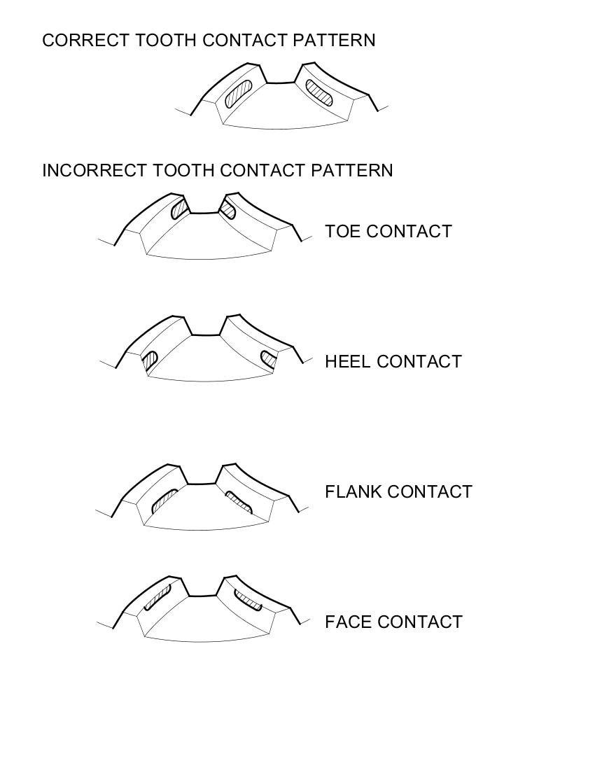 20. If the transfer gear tooth contact is incorrect, adjust the transfer gear tooth contact with the 25 mm, 40 mm, or 80 mm thrust shim. Do not use more than two shims of each thrust shim to adjust the tooth contact.