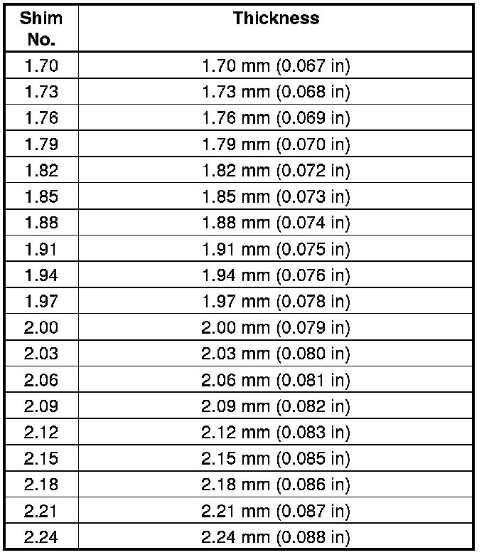 - Increase the thickness of the 80 mm thrust shim (see step 39) by the amount the 25 mm thrust shim was reduced.