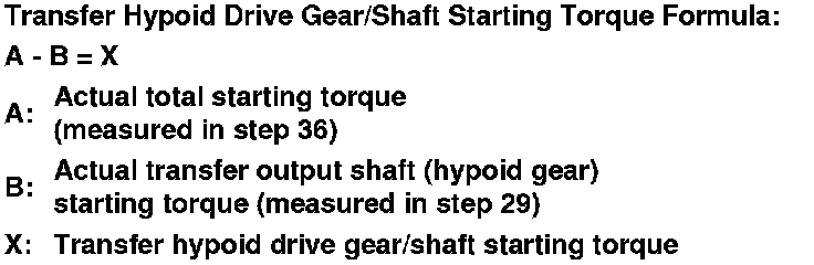- If the calculated transfer hypoid drive gear/shaft starting torque is out of the reference value range, go to step 39.