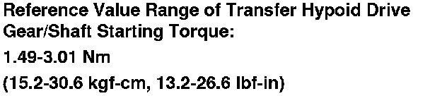 38. Check that the calculated transfer hypoid drive gear/shaft starting torque is within the following reference value range.