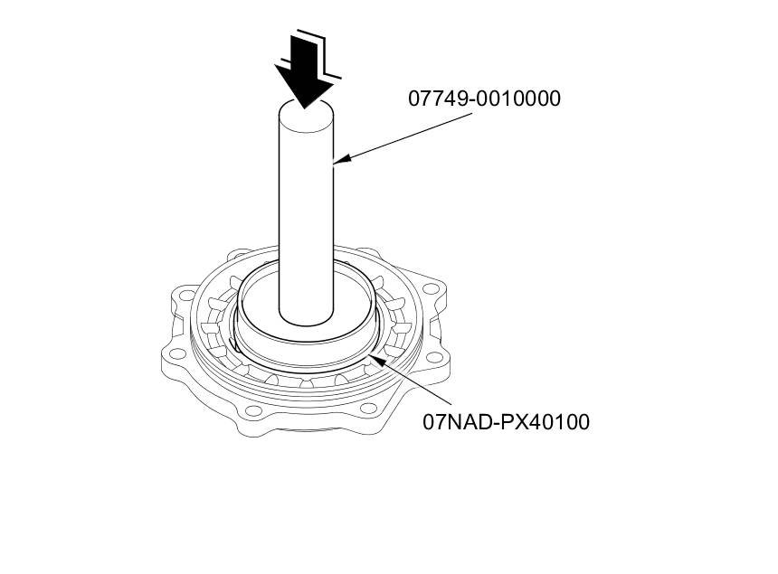5. Drive the oil seal securely in the transfer housing using the driver handle (15 x 135L) and the oil seal driver attachment (65 mm).