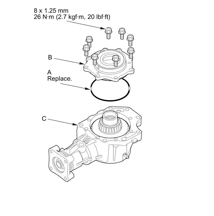- If the tightening torque exceeds 294 Nm (30.0 kg-m, 217 lb-ft), replace the transfer spacer and reassemble the parts.