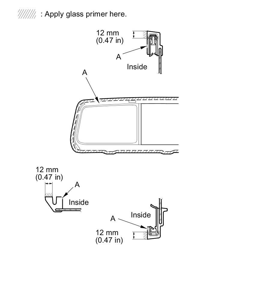 - Do not apply body primer to the back window, and do not mix up the body primer applicator and the glass primer applicator.