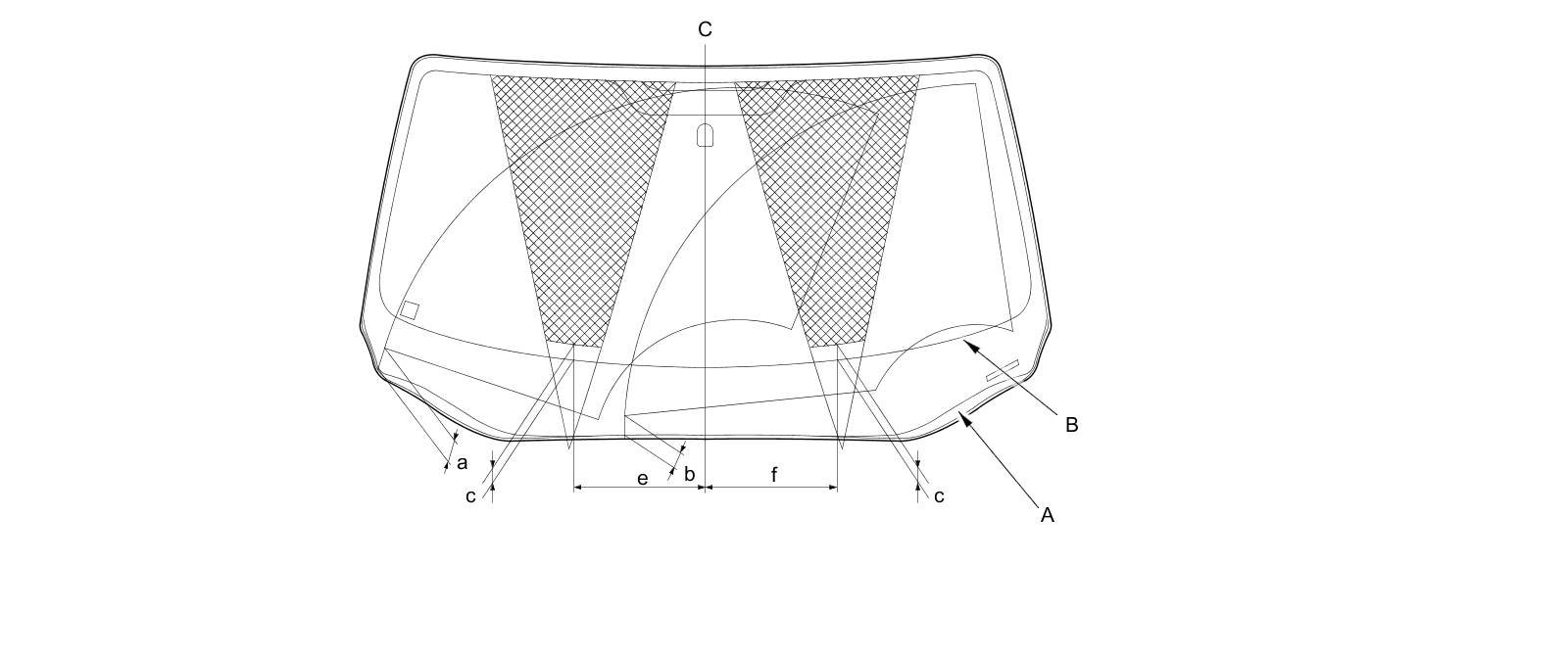 3. When you turn on the washer, confirm 50 % or more of the washer fluid lands within the spray area. If the spray area is not within the standard positions, adjust the nozzles.