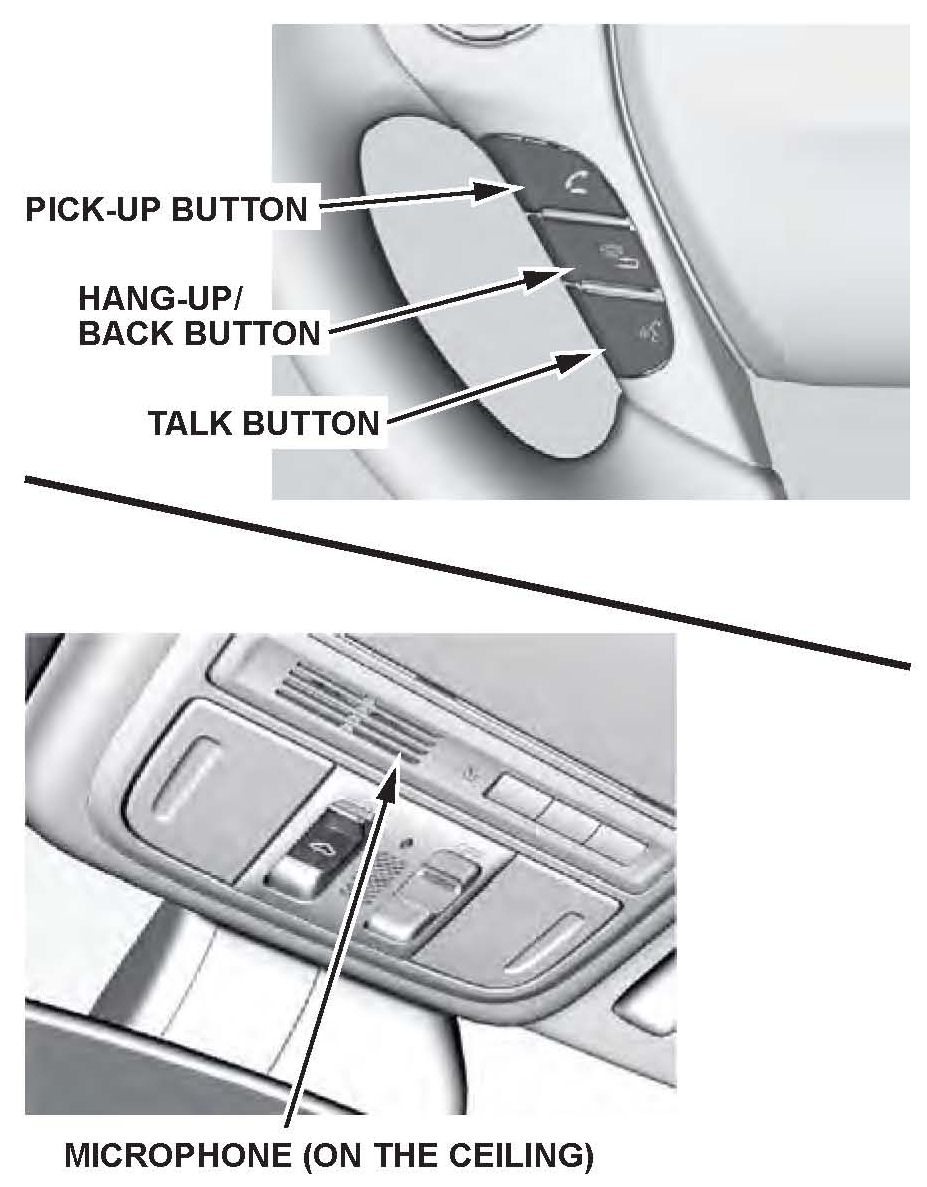 TALK button - To give a voice command, press and release the TALK button on the steering wheel, wait for the beep, then speak the command.