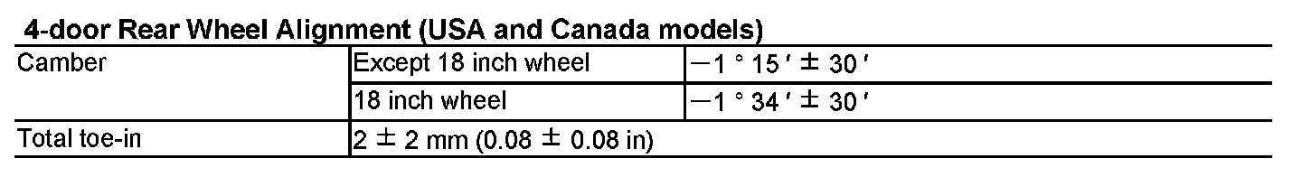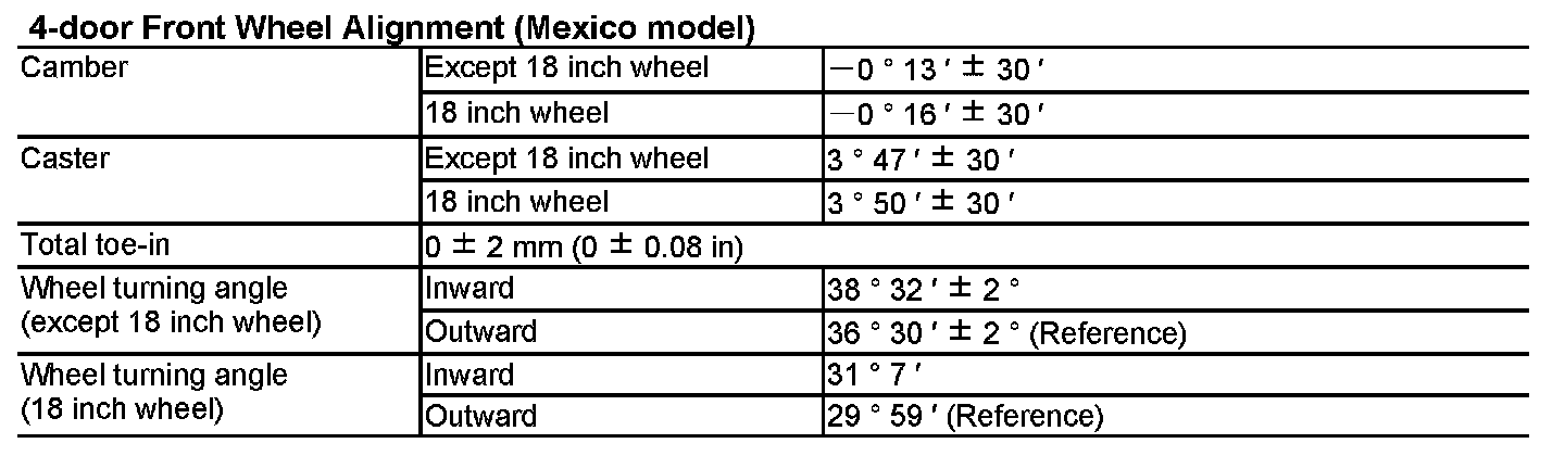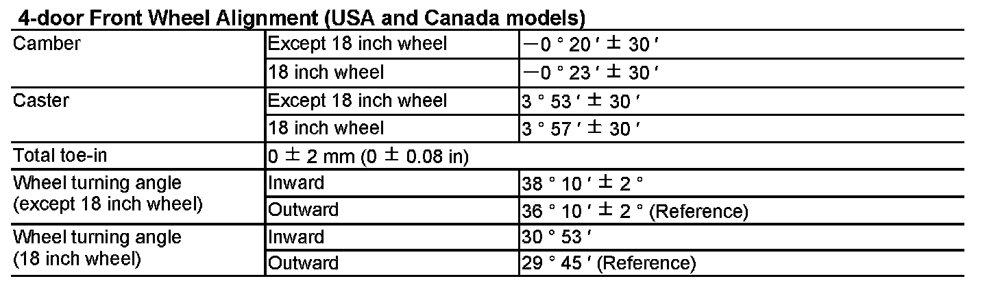 Body Specifications/Wheel Alignment