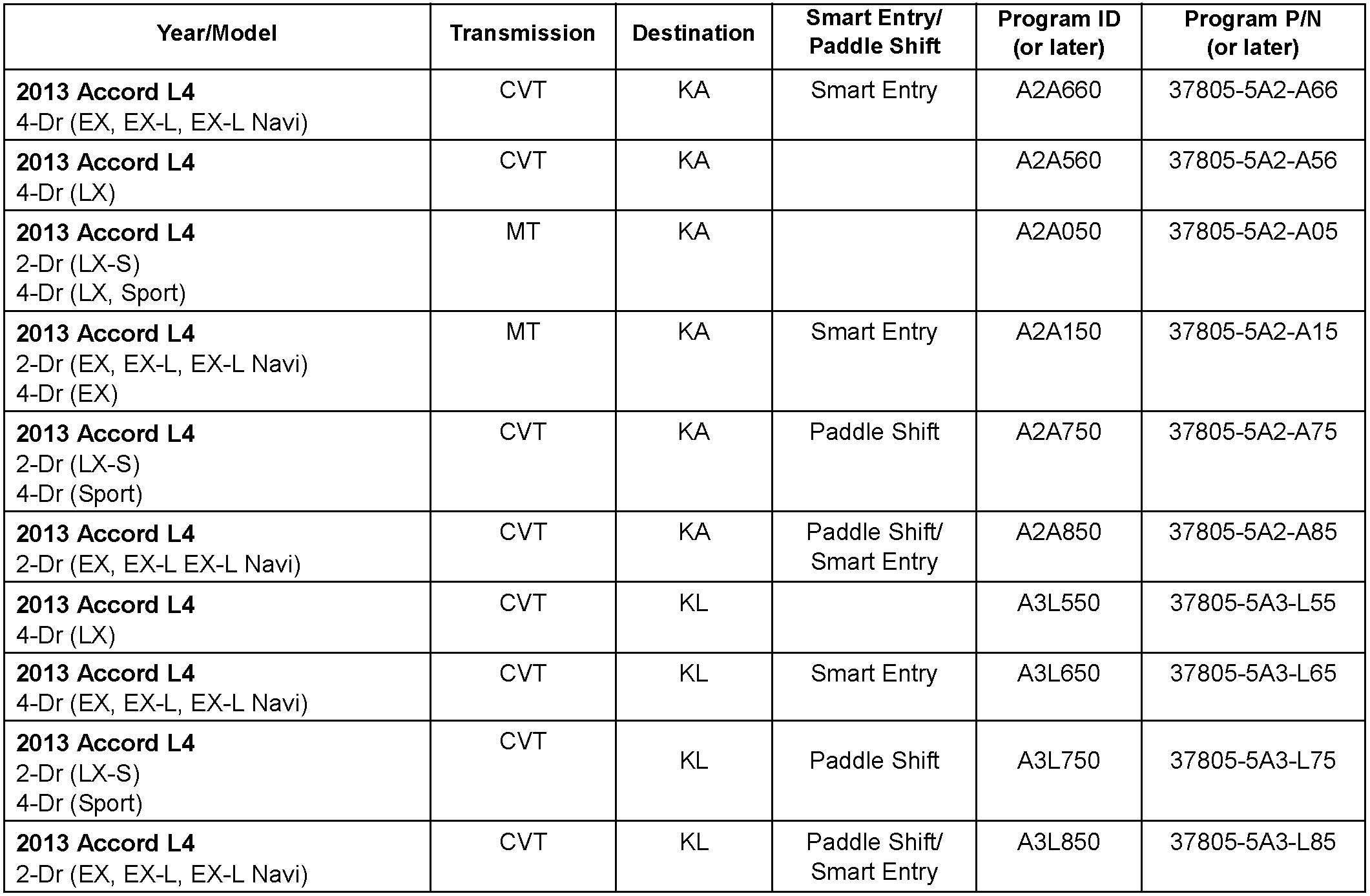 2013 Accord 2-Door - From 1 HGCT1...DA000001 thru 1HGCT1...DA000123