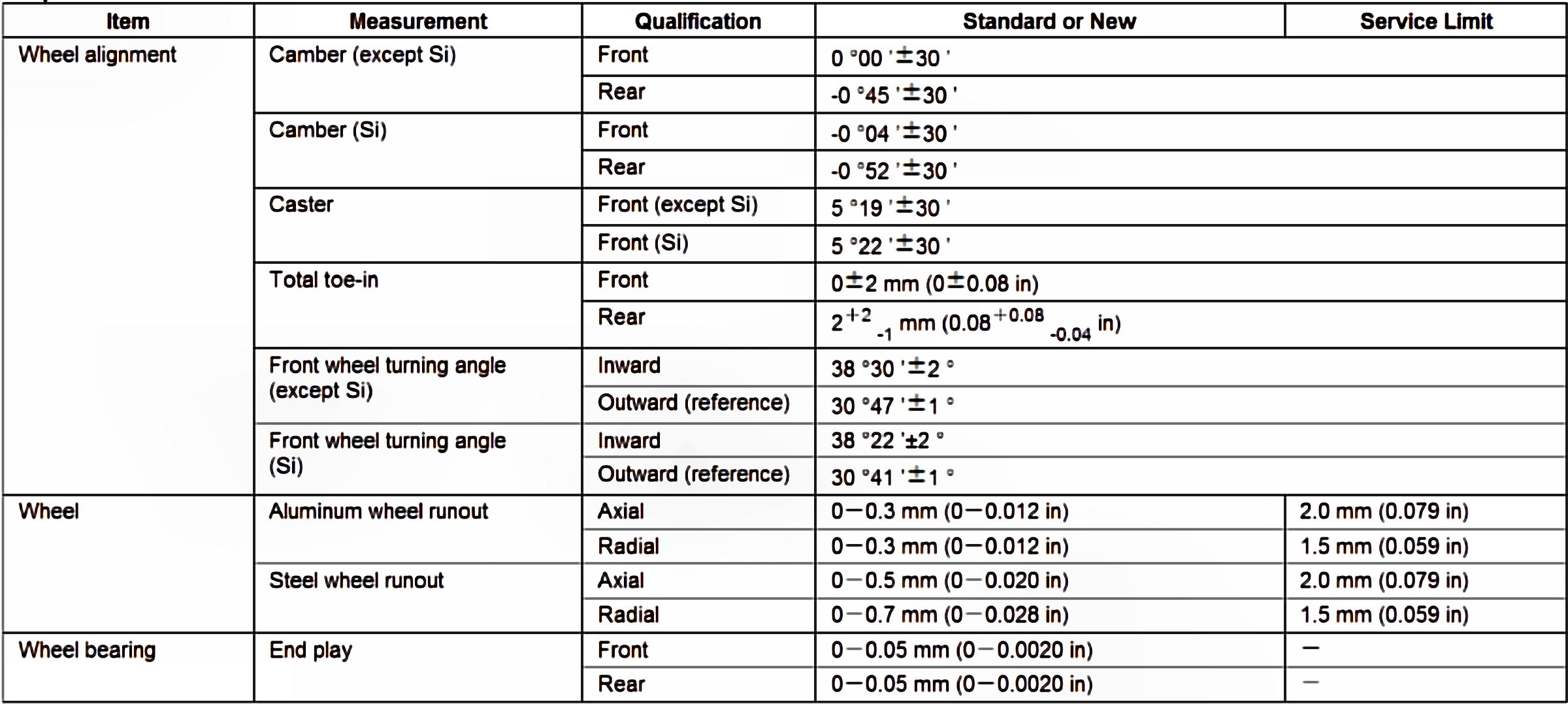 Wheel Alignment Specifications