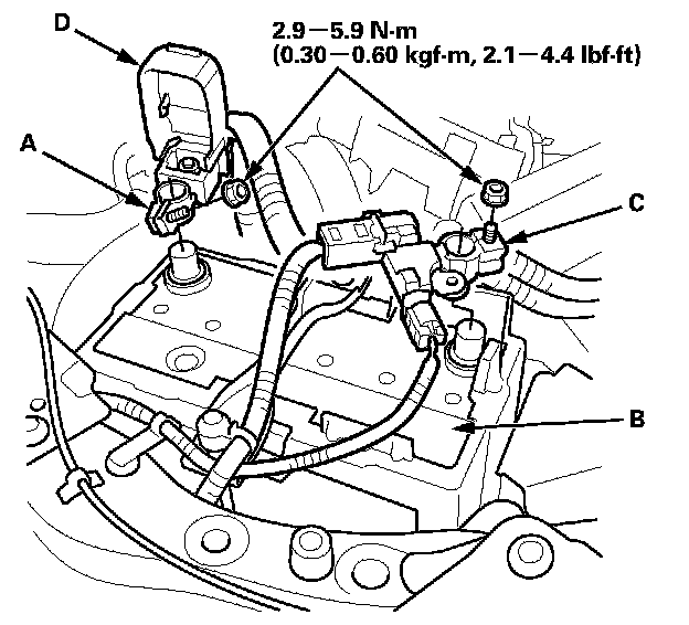 3. Connect the negative cable (C) to the battery.