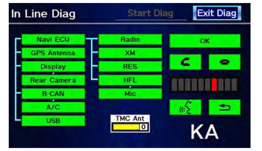 2. You may see the factory In Line Diagnosis screen. If so, do the following. If not, go to step 3.