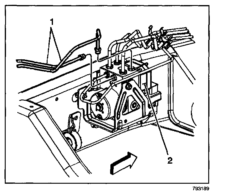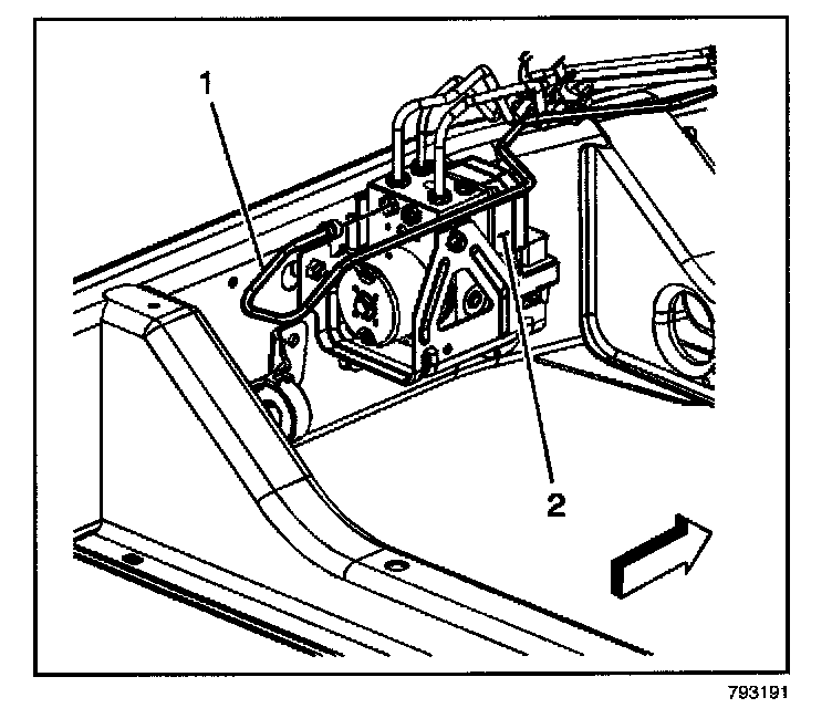 8. Remove the BPMV (2) and EBCM as an assembly from the vehicle.