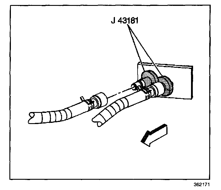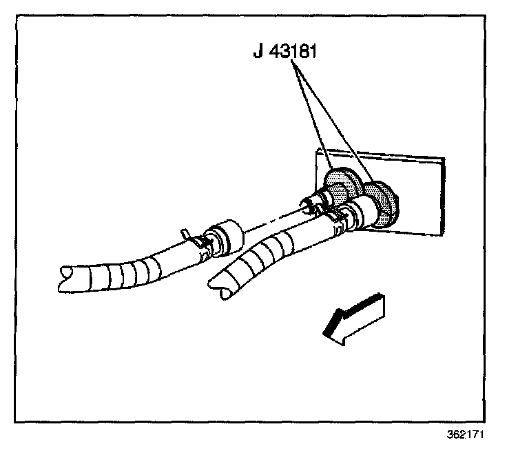 2.1. Install the J 43181 to the inlet heater core pipe.