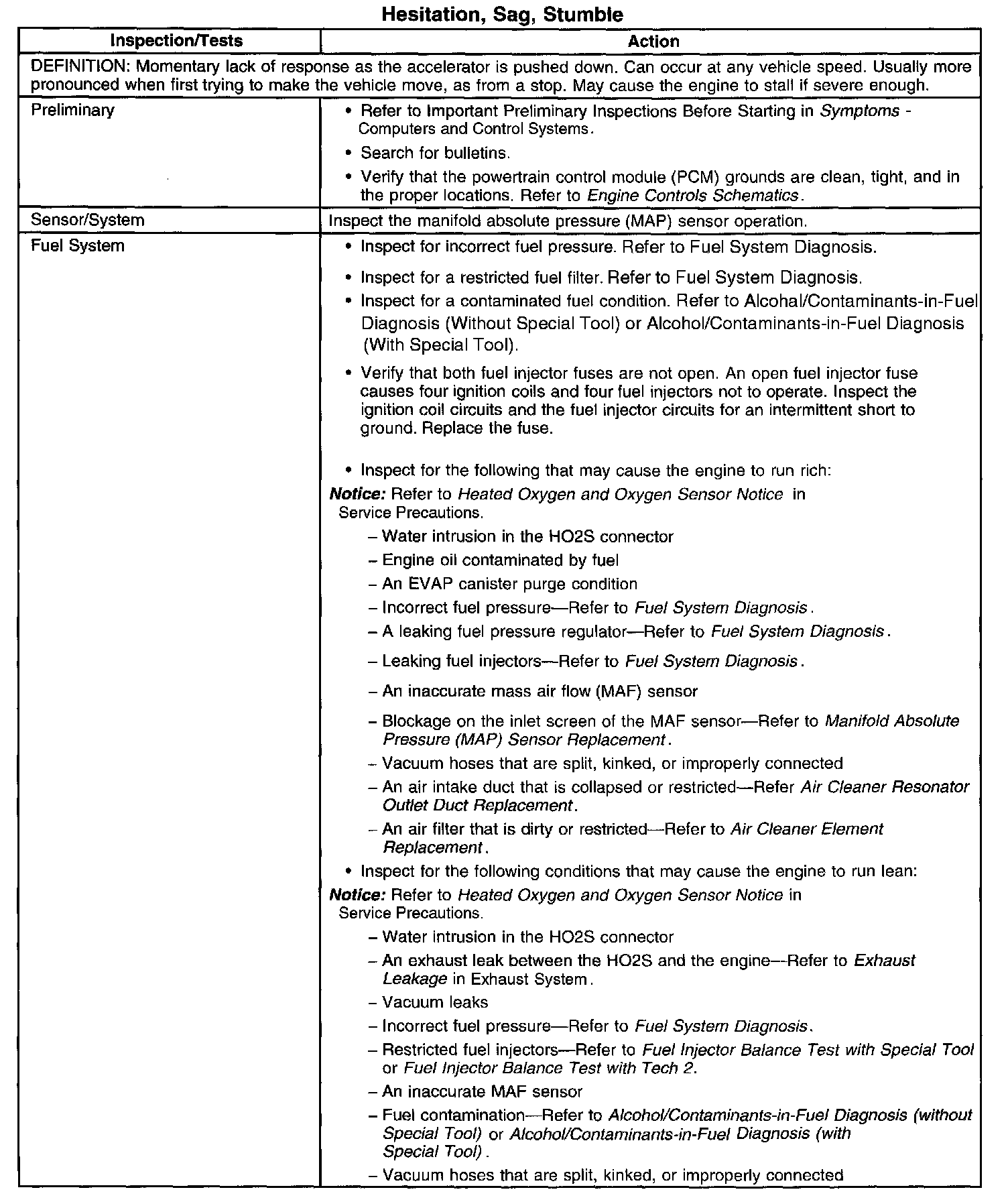 Hesitation, Sag, Stumble