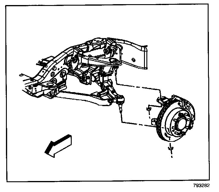 6. Remove the brake hose bracket retaining bolt from the steering knuckle.