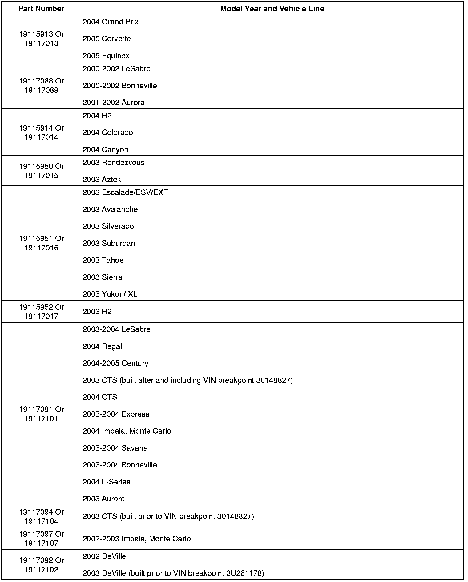 2003-2004 Chevrolet Avalanche, Express, Silverado, Suburban, Tahoe