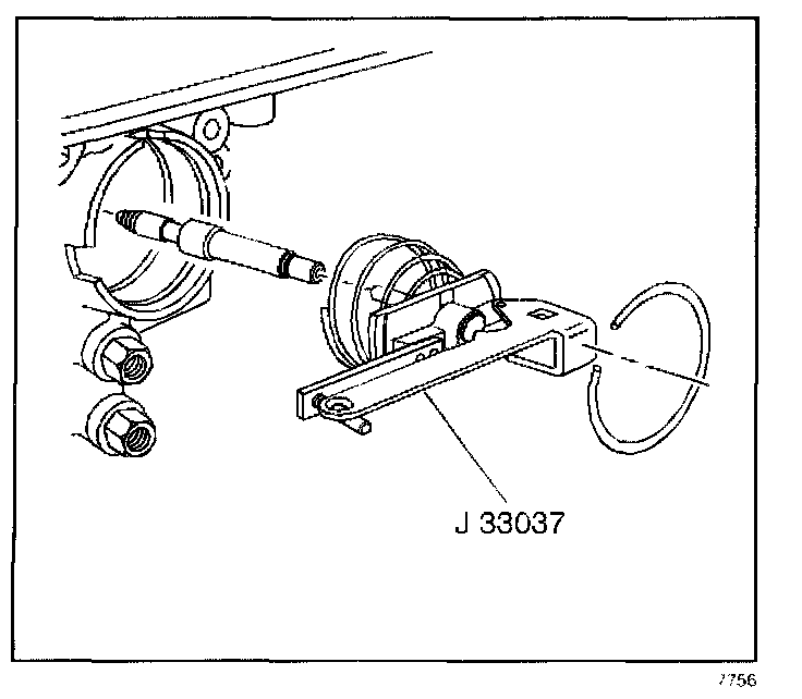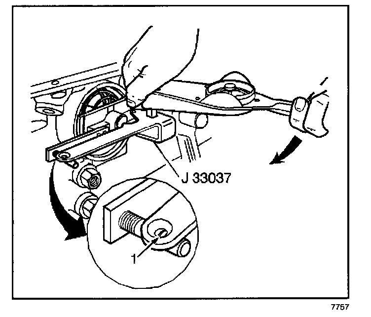 1. Install the band apply pin and the J 33037.
