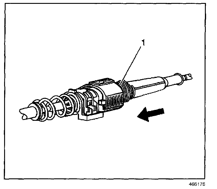 10. If the white cover (1) does not conceal the natural colored lock (2), the shift cable must be readjusted.