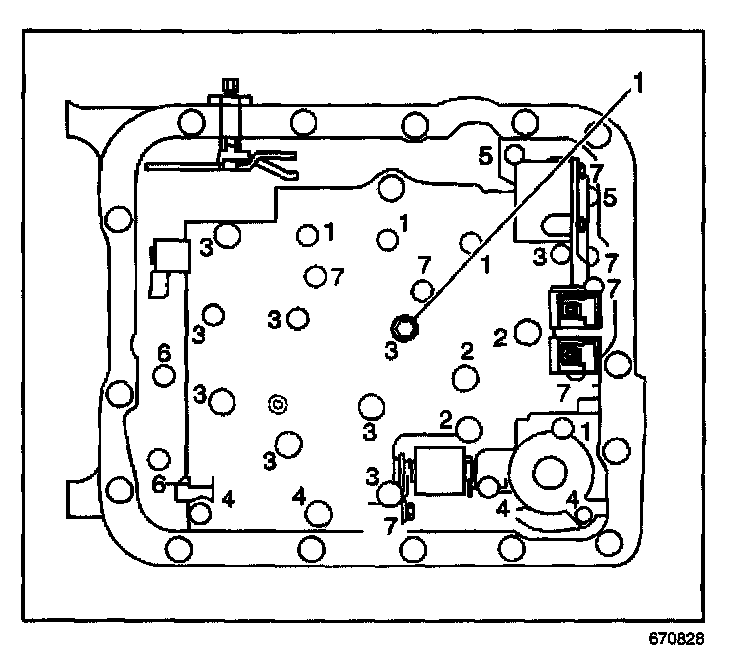 9. Remove the TCC PWM solenoid (1) in order to access the TCC solenoid retaining bolts.