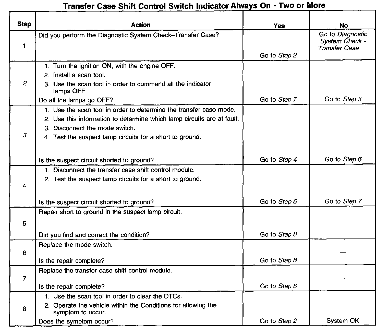 Transfer Case Shift Control Switch Indicator Always On